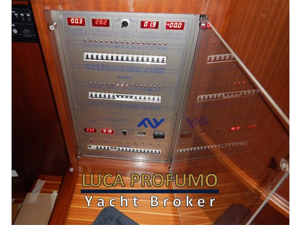 Elica di prua, passerella idraulica a scomparsa, Garage per tender con meccanisco varo/alaggio, climatizzatore, TV sat, impianto tv, climatizzatore, forno, piastra 4 fuochi, lavatrice, impianto hi-fi.