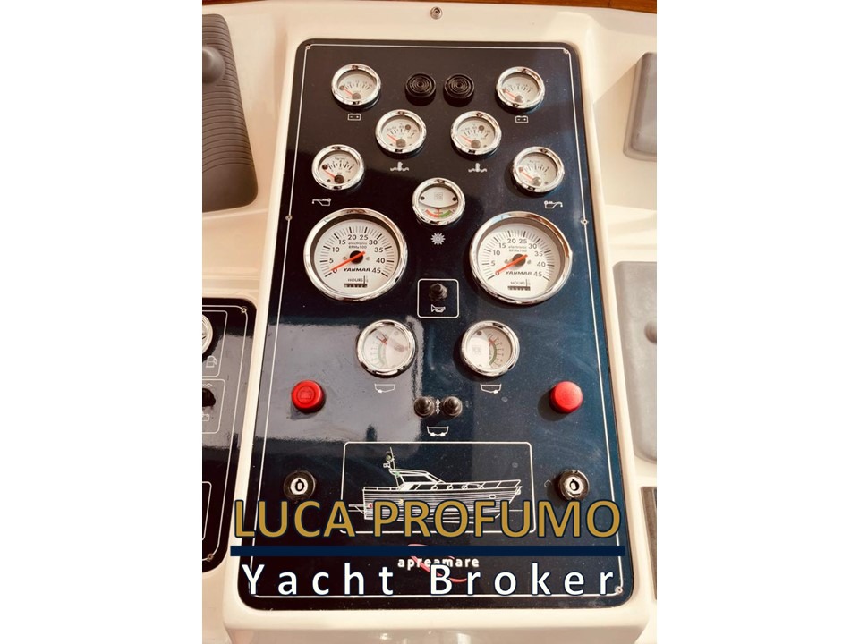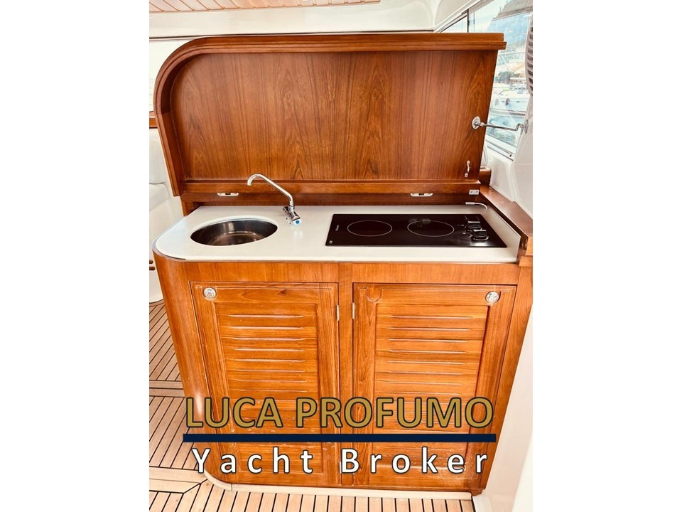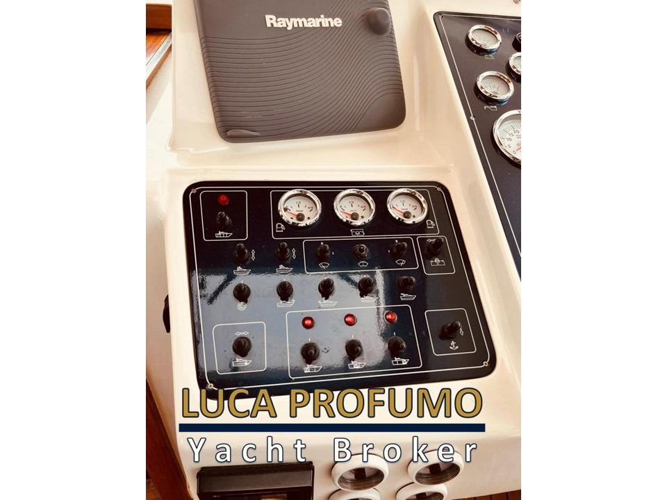 Elica di prua, Elica di poppa (2020); Coperta in teak rifatta nel 2020; Passerella idraulica; Mobile pozzetto in teak con lavello due fuochi e due frigoriferi (2022); Tavolo pozzetto in teak Unopiù 6 posti con sedie (2022); Tendalini copri-finestre e chiusura pozzetto (2020); Faro di ricerca; Verricello con ancora inox e catena inox; SmartTV Samsung in ciascuna cabina (2022); Aria condizionata; Rivestimenti pavimento in moquette beige su misura (2022). Impianto Bluetooth/USB Rockford con Subwoofer (2020); Doccetta acqua dolce freddo/caldo in acciaio (2022); Doccetta acqua di mare in acciaio (2022).