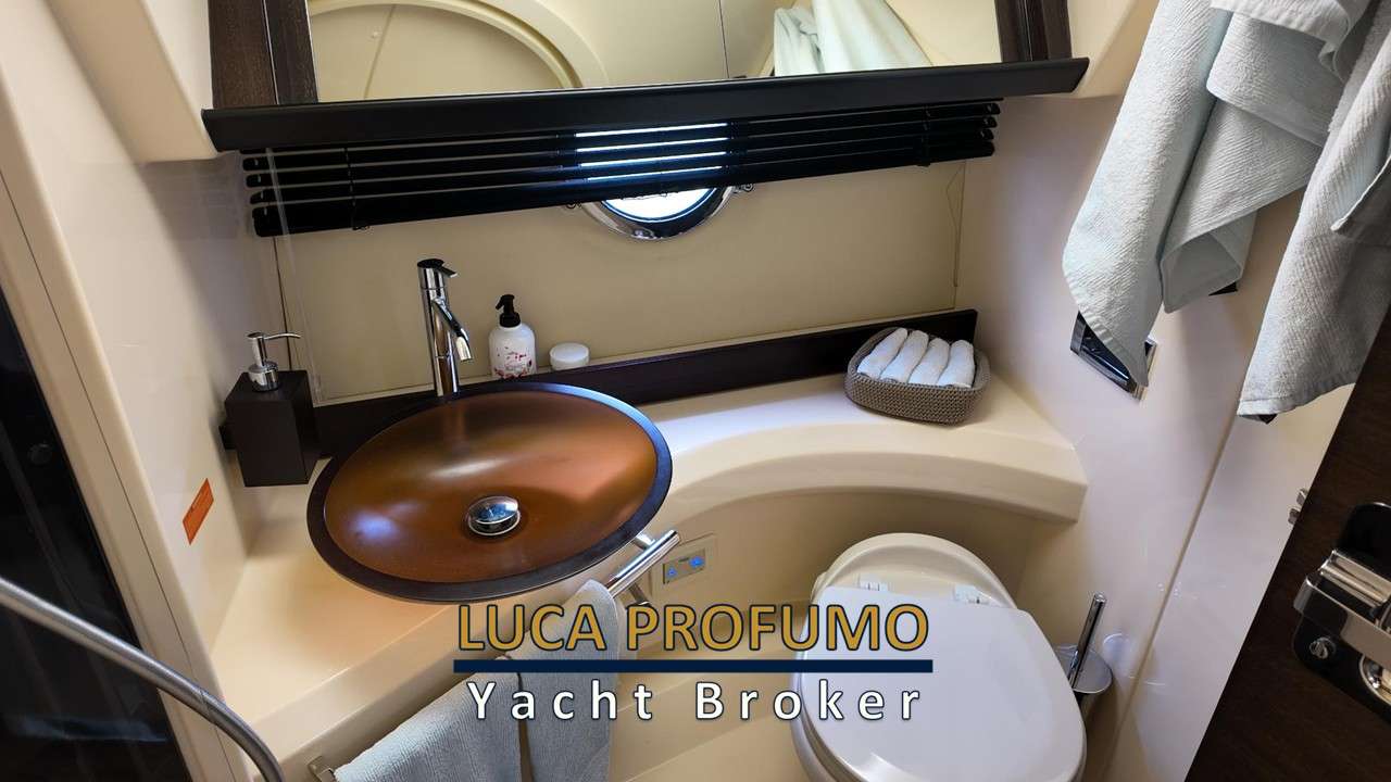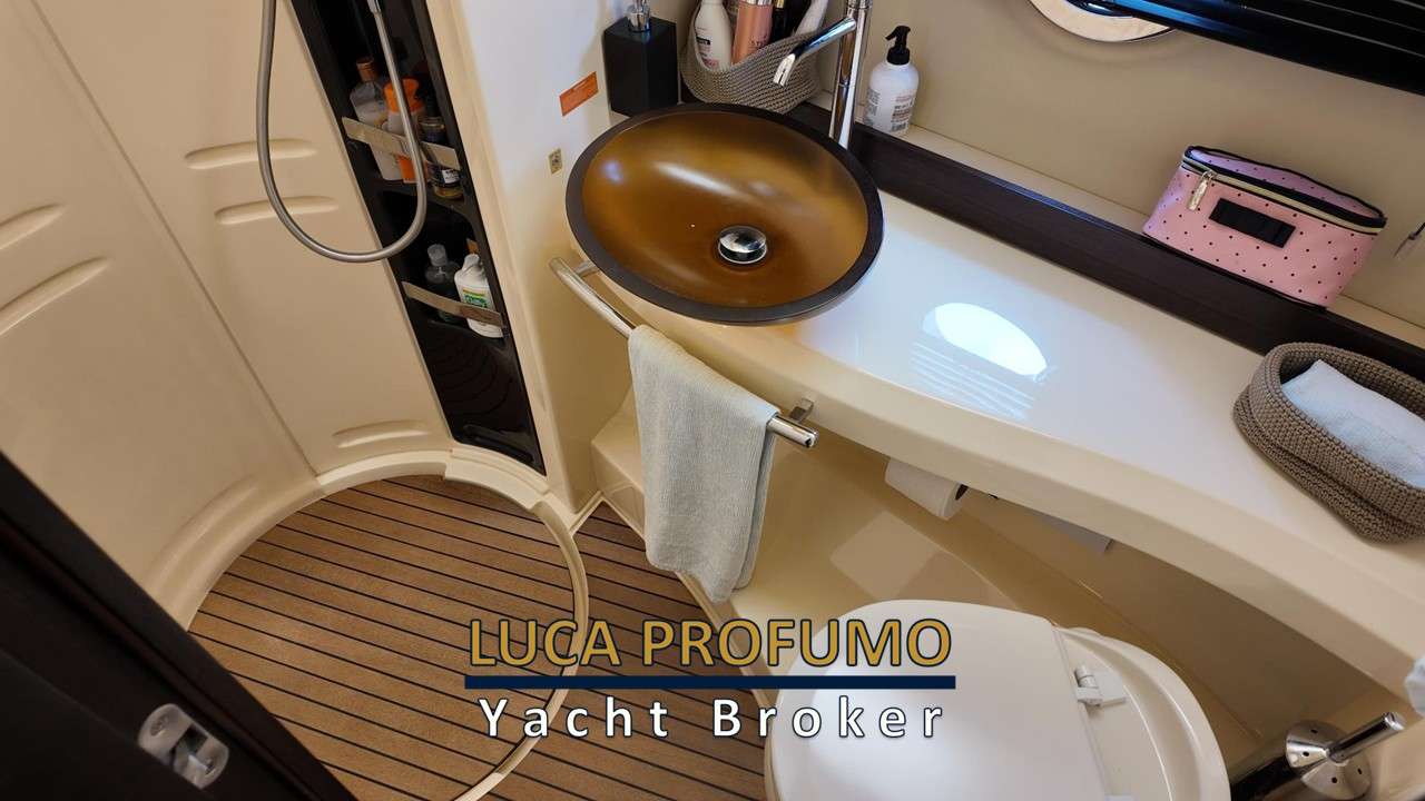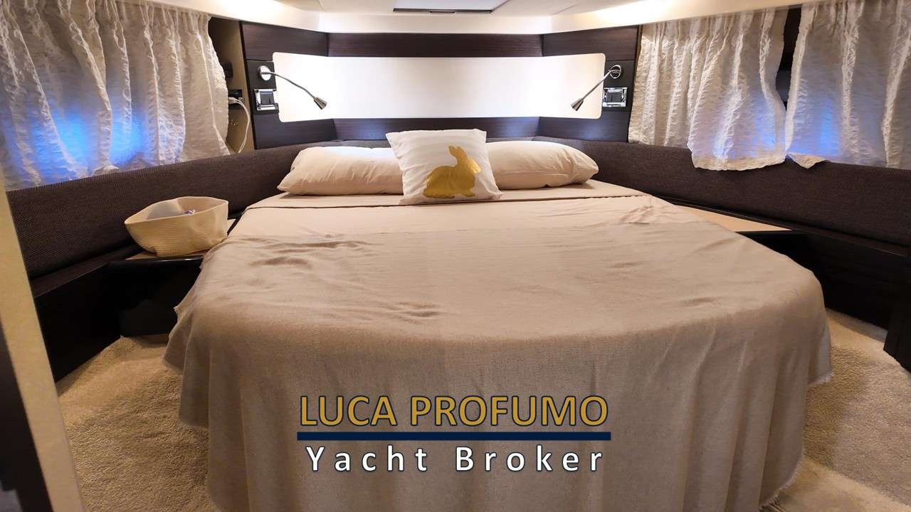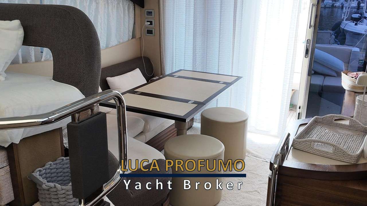 Salone capiente e raffinato ben illuminato. Chiusura porta scorrevole in acciaio e vetro. Cucina funzionale completa. Cabina armatoriale a prua con bagno. Cabina ospiti trasformabile matrimoniale/due letti in piano + bagno.