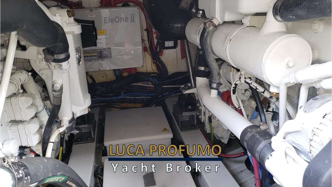 Tendalini oscuranti neri+ bianchi nuovi. Cuscineria nuova. Rimozione antivegetativa a zero, sostituzione di tutte le prese a mare. Sostituzione manicotti. Manutenzione motori ore 500 come da costruttore (refrigeranti, turbine, scarichi, lift pump ecc). Sostituzione assi boccole tenute e eliche. Ripristino movimentazione tettuccio elettrico.