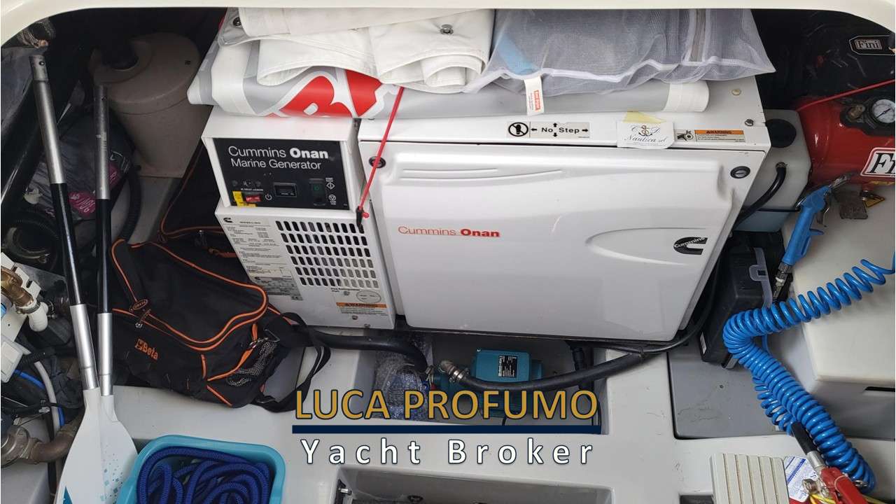 Elica di prua, passerella idraulica, movimentazione plancetta up/down kg 400, climatizzatore, antenna TVSAT, HIFI Fusion, pannelli solari. Doccia a pura e poppa. Ancora e catena maggiorati.