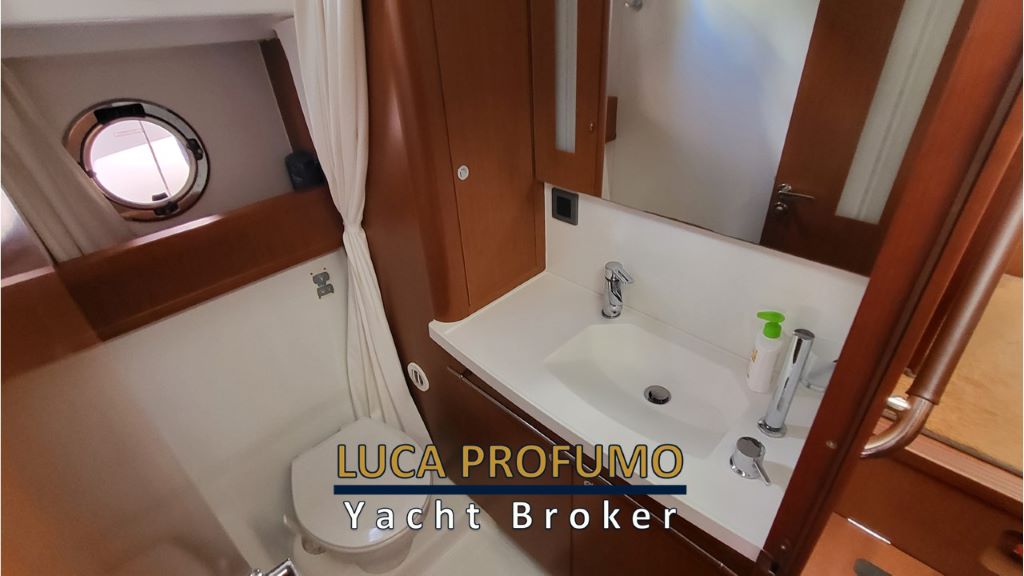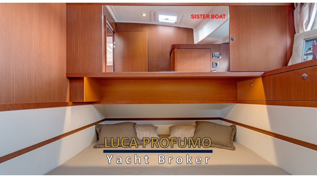 Grandi oblò di murata inondano le cabine di luce. Il divano convertibile con tenda di separazione permette in qualche secondo di trasformare il quadrato in terza cabina.