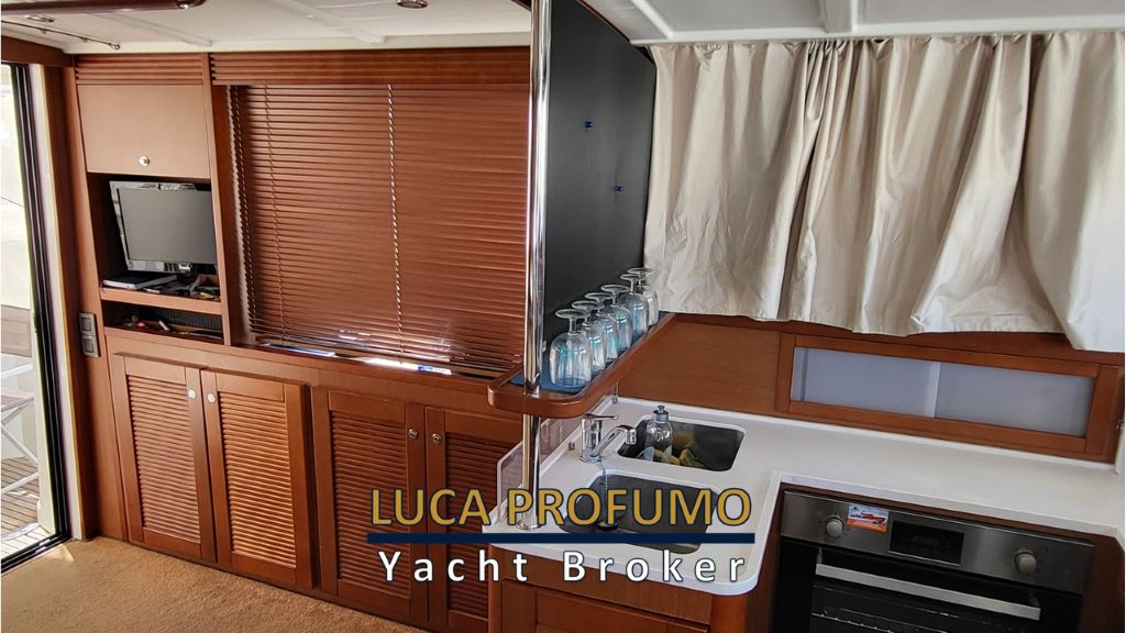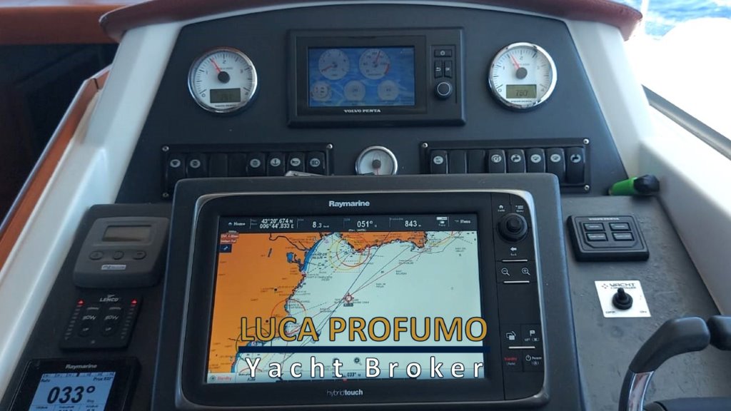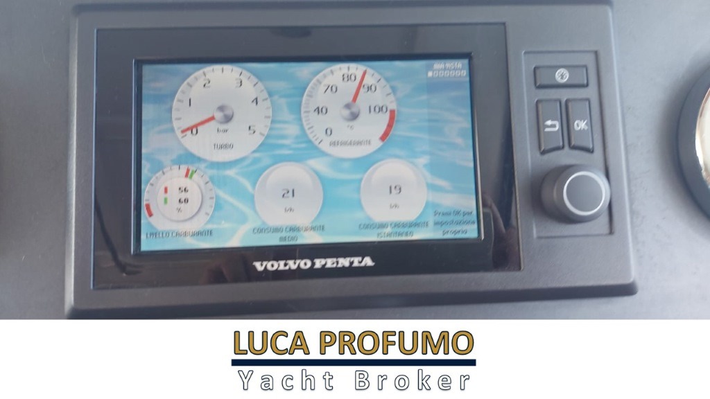 Elica di prua, Passerella idraulica, Generatore Mase 7kw, Inverter 12/220, Climatizzatore, piano cottura elettrico, forno elettrico, antenna TV, TV salone, TV cabina, Bigo tender, mobile sul fly, tendalino chiusura pozzetto .