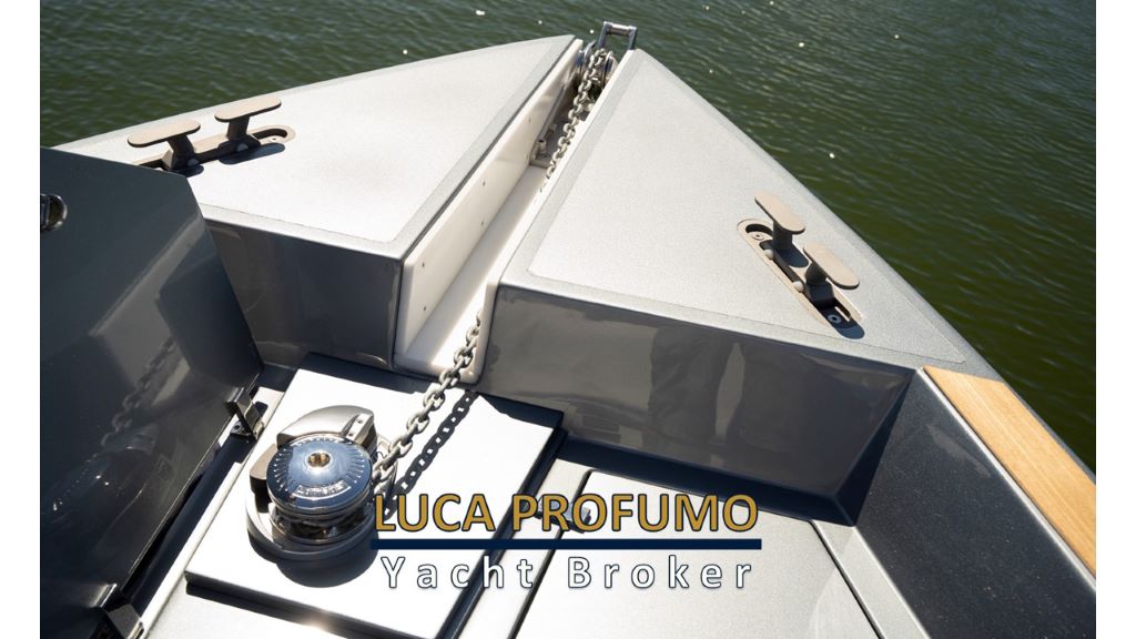 elica di prua, climatizzatore, cucina con due fuochi e frigorifero, pozzetto in teak, camminamenti in teak, plancetta in teak, hard top, cuscineria esterna completa, tavolo pozzetto in teak