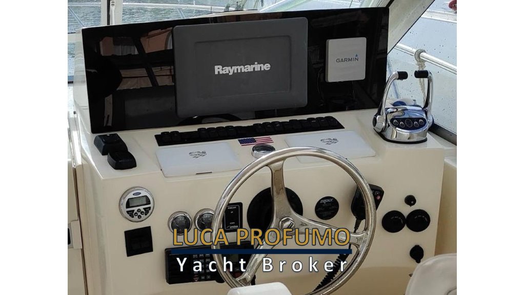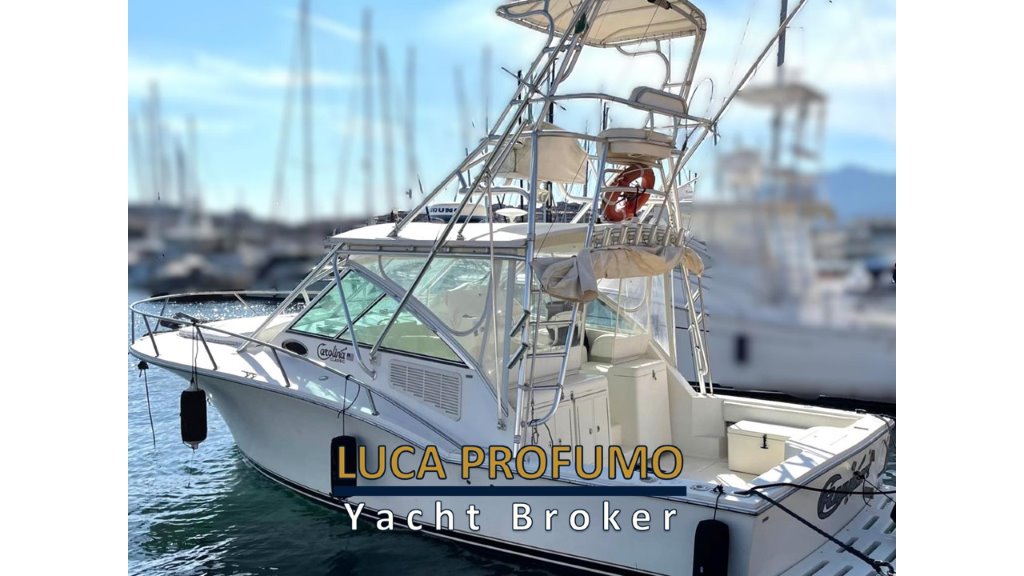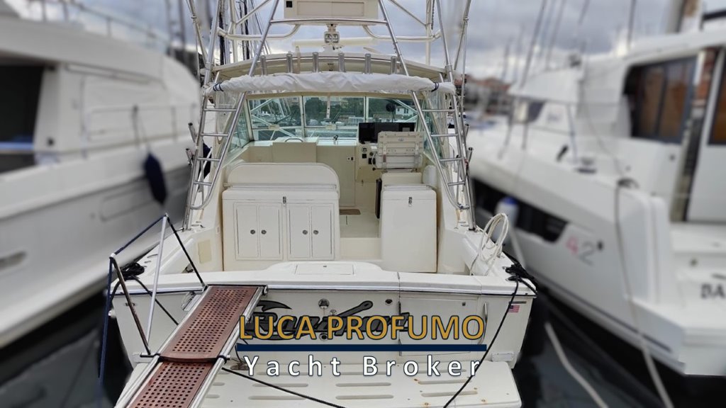 Half Tower attrezzato di comandi motori ed elettronica navigazione, Outriggers, Trolling valve, Portacanne, Vasca pescato, Vasca del vivo, Faro pirata.