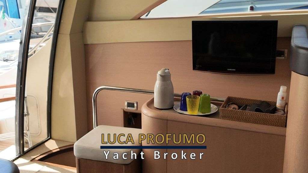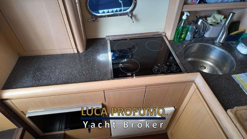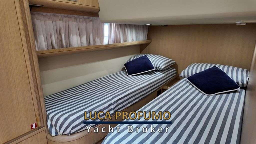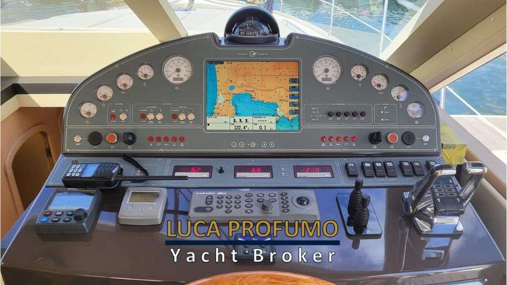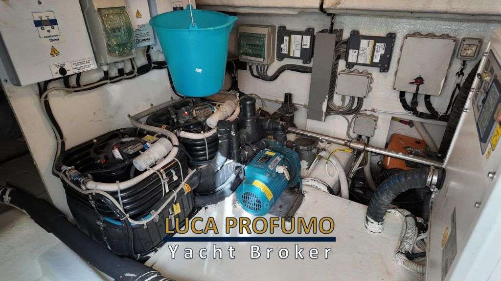 .Elica di prua, Elica di Poppa, Passerella Idraulica, Generatore 9kw, Climatizzatore, porta laterale, pozzetto in teak, camminamenti laterali in teak, tendalino pozzetto, cuscineria pozzetto, cuscino prendisole a prua