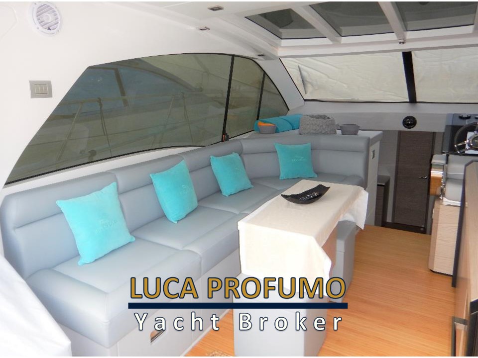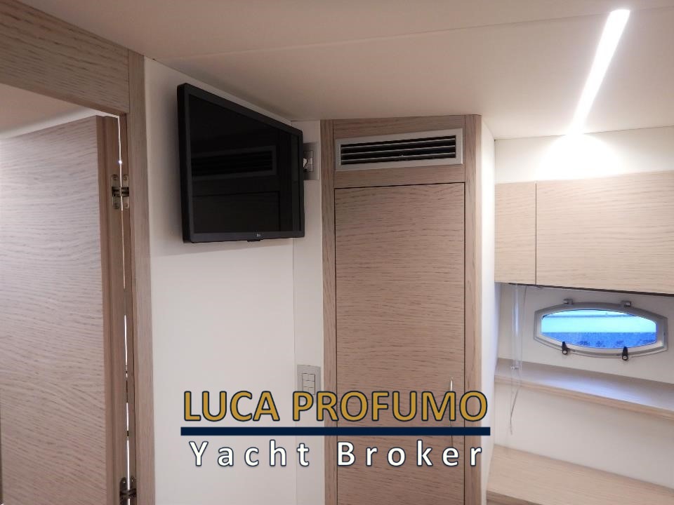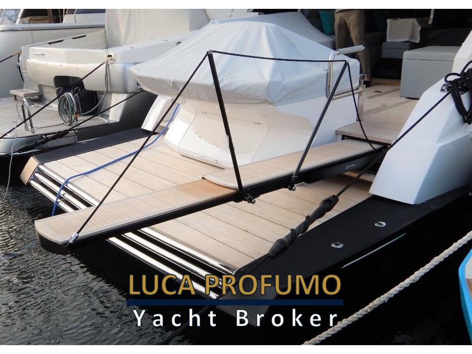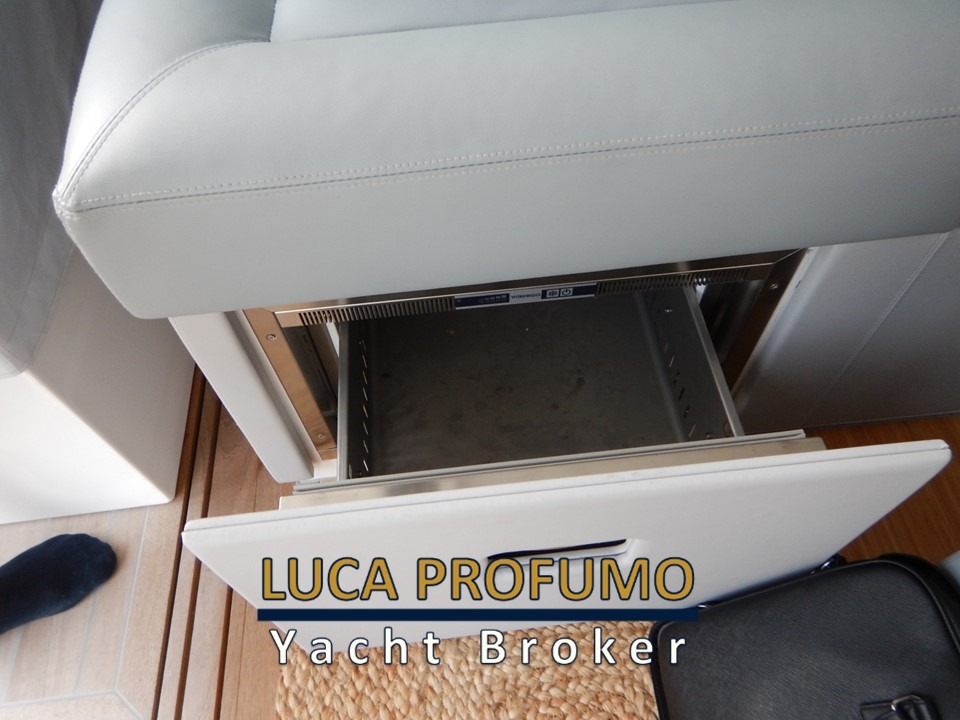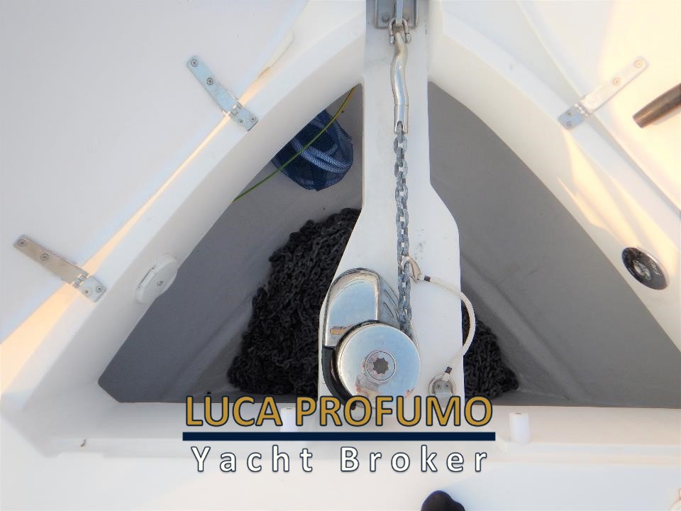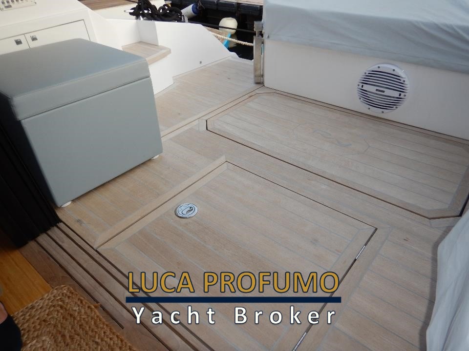 Elica di prua Sidepower 185, passerella a scomparsa, plancetta tender lift 600 kg., hard top apribile, tendalino elettrico pozzetto, tavolo pozzetto a scomparsa con movimentazione elettrica, pozzetto in teak, climatizzatore caldo/freddo, impianto TV con TV LCD, n.3 TV, Impianto stereo FUSION con altoparlanti salone pozzetto e prendisole a prua, WC Tecma, inverter 800 watts,