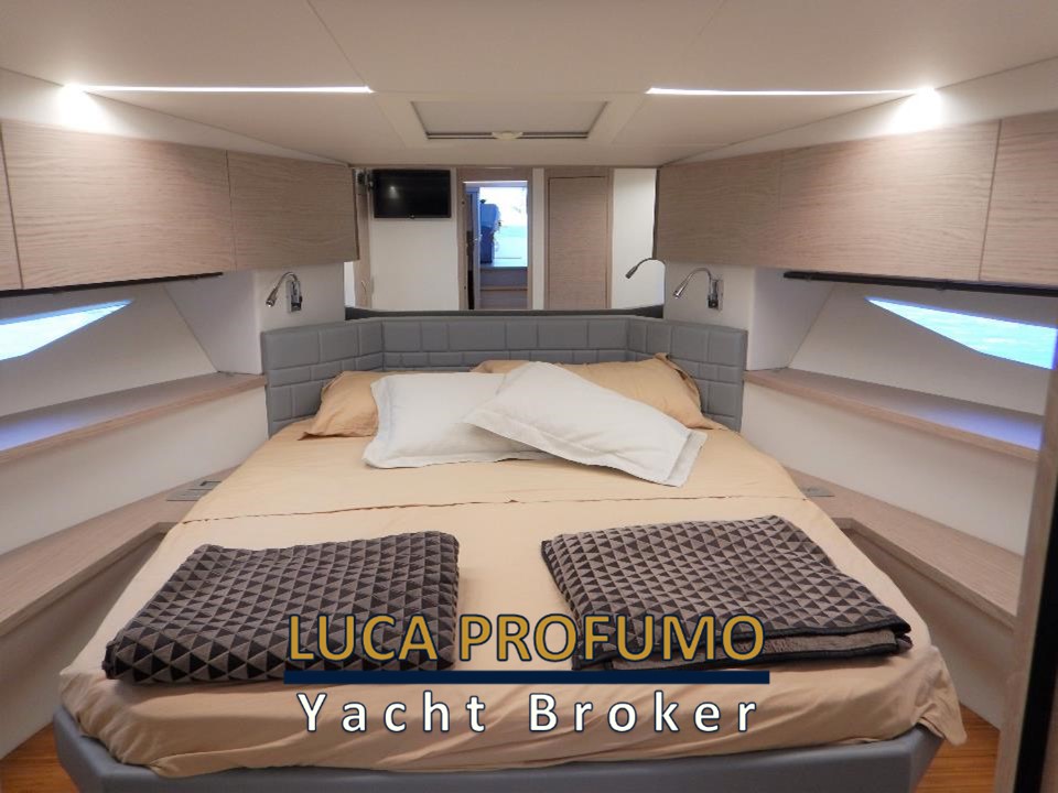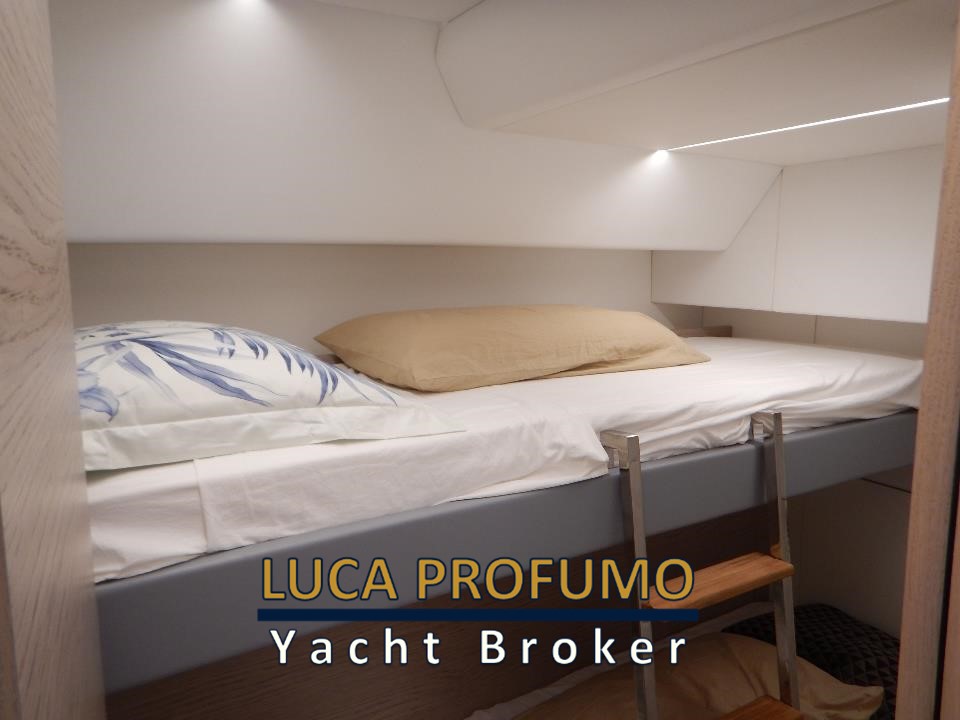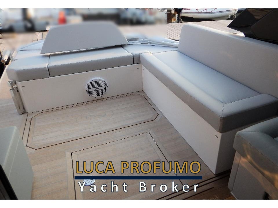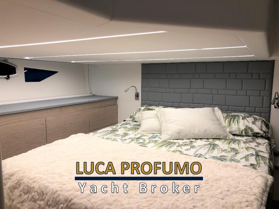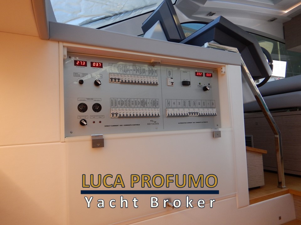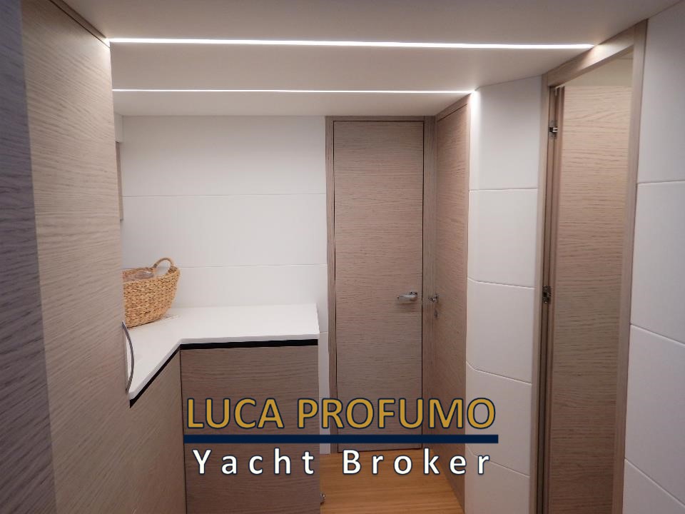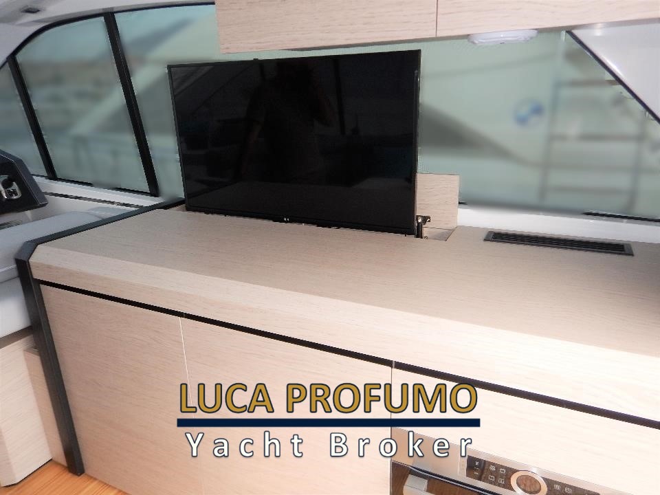 Elica di prua Sidepower 185, passerella a scomparsa, plancetta tender lift 600 kg., hard top apribile, tendalino elettrico pozzetto, tavolo pozzetto a scomparsa con movimentazione elettrica, pozzetto in teak, climatizzatore caldo/freddo, impianto TV con TV LCD, n.3 TV, Impianto stereo FUSION con altoparlanti salone pozzetto e prendisole a prua, WC Tecma, inverter 800 watts,