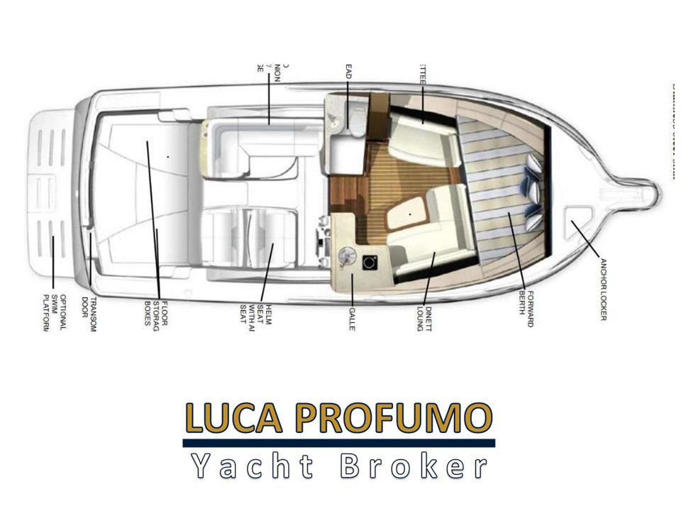 Hard top con chiusura, Climatizzatore (Caldo/Freddo), verricello ancora, TV, DVD, Stereo, Frigorifero, Ghiacciaia (esterna), Prese interne 12v,Cuscini prendisole prua, wc a vuoto, plancetta di poppa, tendalino pozzetto.